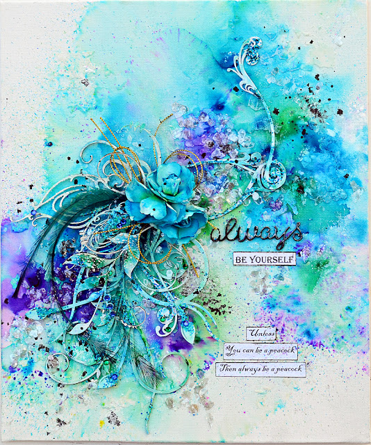 Prima Products: Divine Envoy, Divine Couplet, #950491 Divine 6x6 Paper Pad, #950651 Journaling Notecards Divine, #950538 Divine Chipboard Pieces, #844486 Zephyr Tempore, #844462 Zephyr Angelus, #579449 Match Boxes Garden Fable, #575298 Something Blue At The Altar, #555481 Lucerne Fairy Bell, #575335 Something Blue Flowers - Best Man, Color Bloom Sprays - Peony, Vibrant Turquoise, Sunshine, #891343 Chalk Ink - Turquoise Stone, #572181 12x12 Stencil Stain, Cling Mount Stamps - Fairy Belle