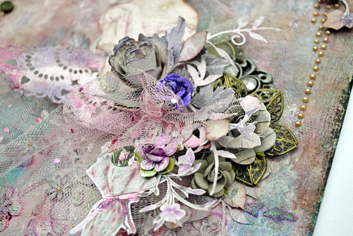 I worked with distress ink to create the background. Masked detail was added to create the dress detail.